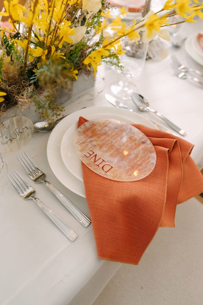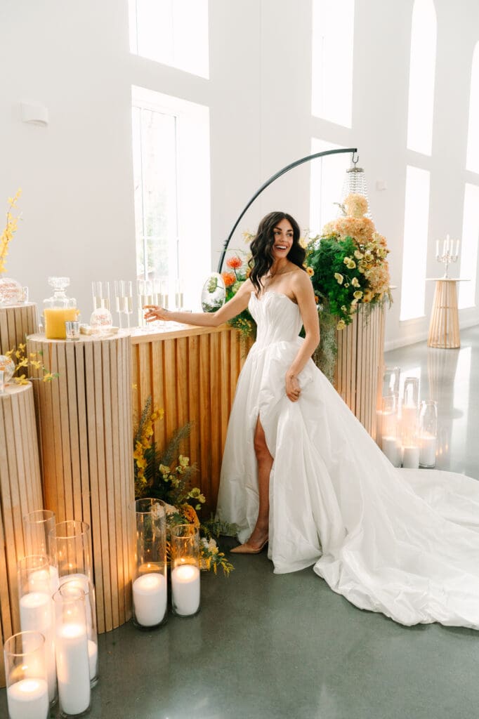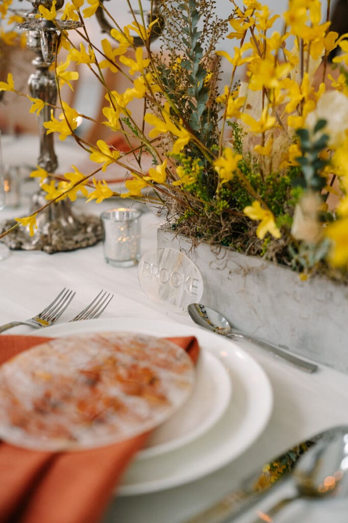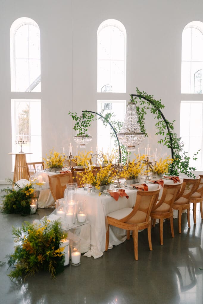 However, does that mean you can’t use some of that inspiration to create amazing things for your wedding? Thanks to some amazing Arkansas wedding vendors, this concept was created. Jessica from JLK Weddings presented a beautiful display inside the Chapel at The Grand at Willow Springs. Alongside gorgeous florals from Arloh Flora, and curated signage and menus from Accents by Ovation, this truly was a powerhouse display.