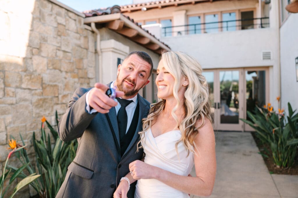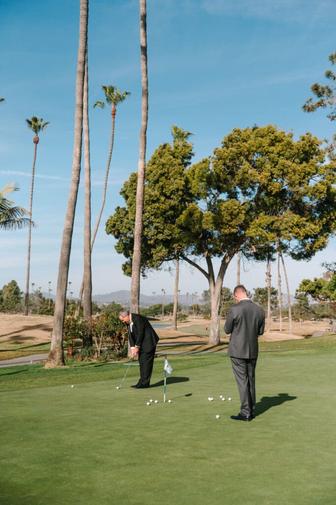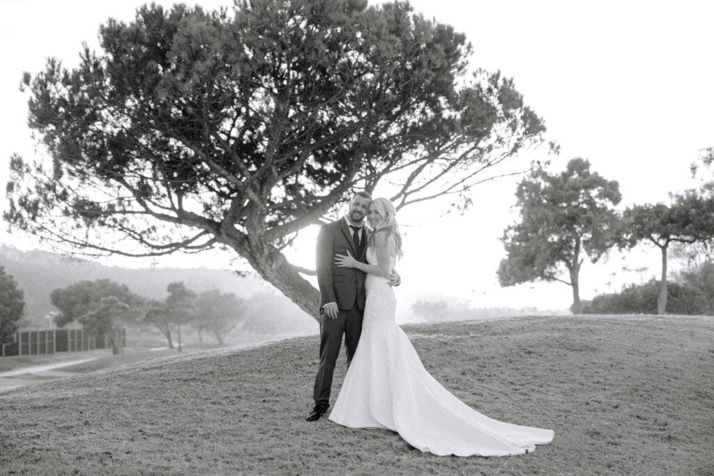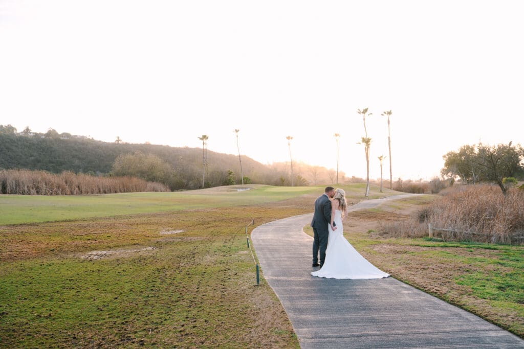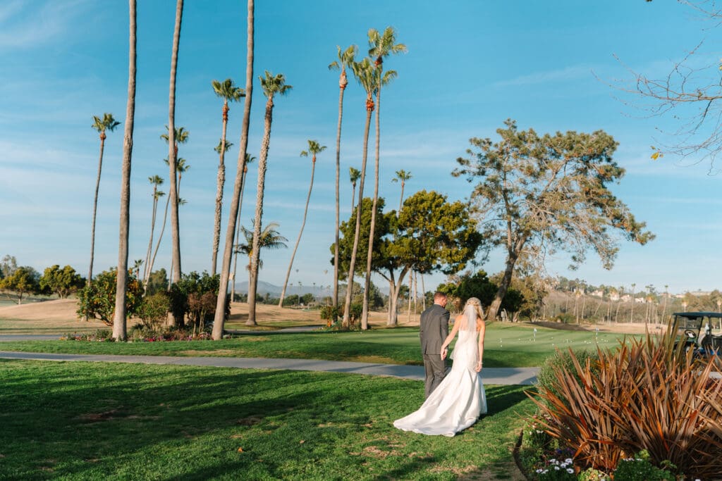 With the lush grounds and beautiful scenery surrounding Fairbanks Ranch Country Club, it created the perfect setting for editorial-style portraits while still leaving space for natural laughter and real moments between the couple.