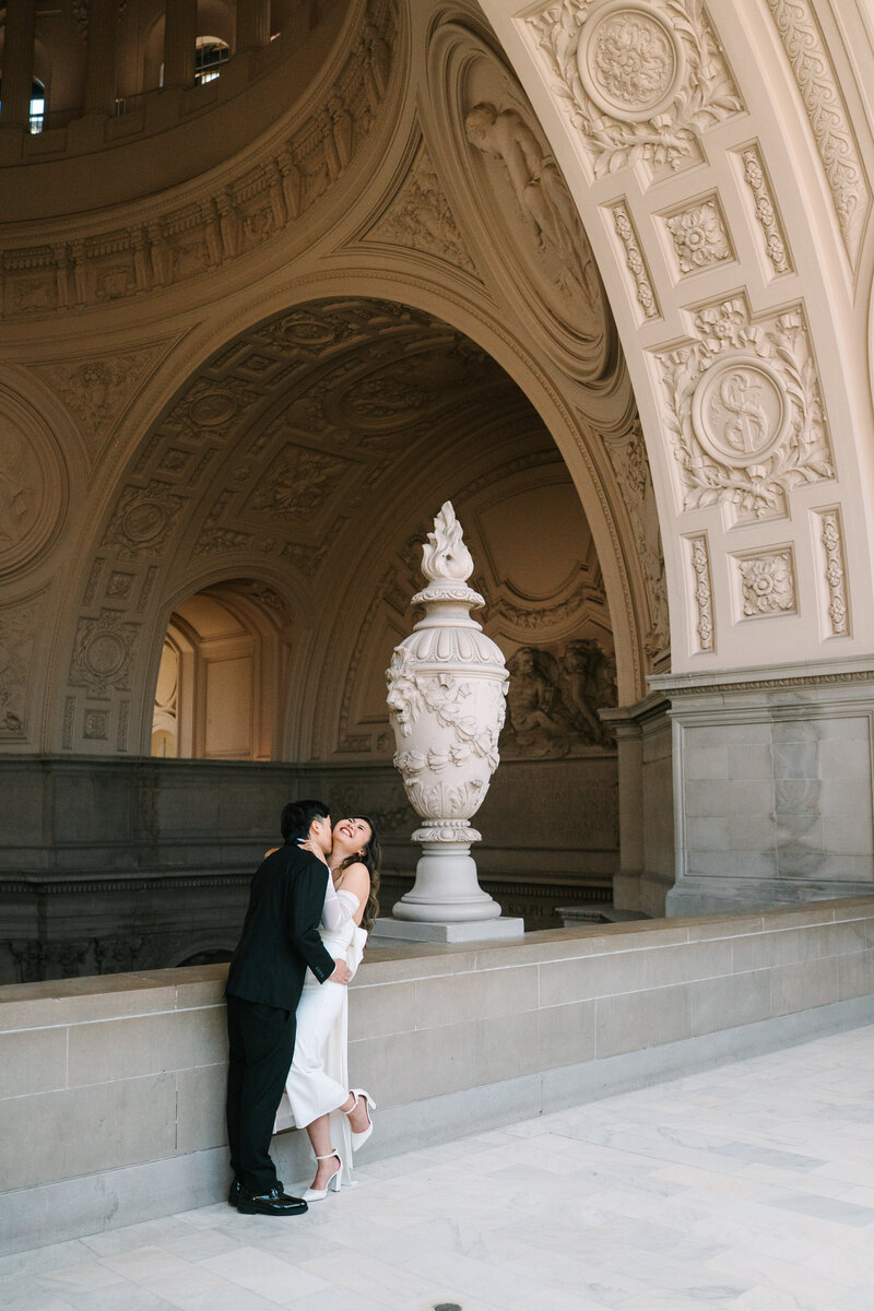 June and Kenny kept it intimate and unforgettable, eloping at San Francisco City Hall surrounded by just their closest friends and family. The stunning architecture of the building provided the perfect backdrop for portraits that are equal parts elegant and joyful. Every corner, staircase, and archway became a frame for their love, making each photo feel timeless.