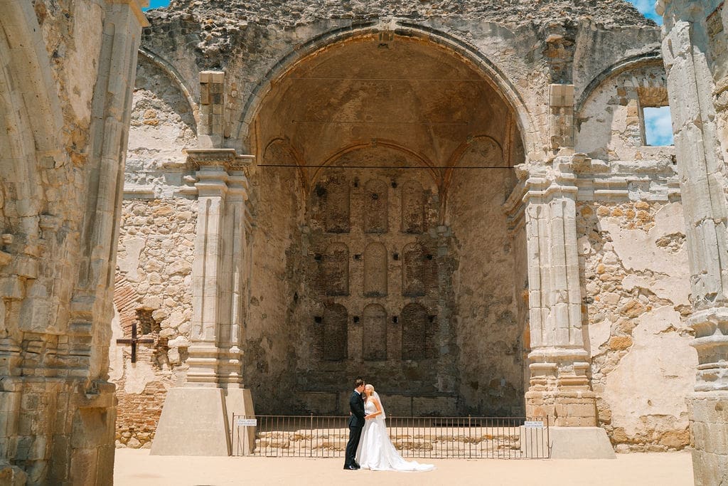 As a San Diego wedding photographer, Sean & Sofie’s wedding day was the perfect blend of timeless elegance and heartfelt celebration. Set at the beautiful Serra Plaza in San Juan Capistrano, their day unfolded with all the warmth and charm you’d expect from a couple so deeply in love. Before the festivities began, they slipped away to the historic Mission San Juan Capistrano for portraits, an iconic backdrop that framed their joy with golden light, textured stone, and centuries-old beauty.